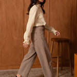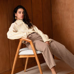 Sa teinte taupe, douce et légèrement vintage, apporte une chaleur inattendue au classique pantalon en jean. Une couleur qui se fond parfaitement dans la palette Kilky Paris, tout en offrant une alternative élégante au denim traditionnel.