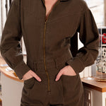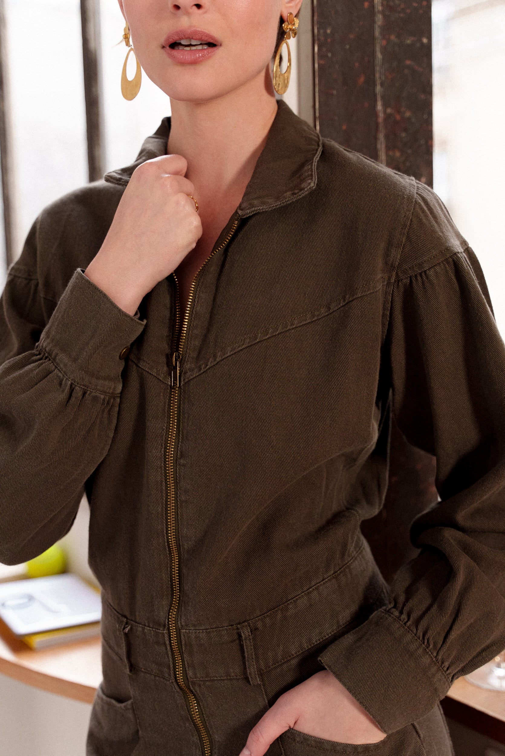 La combinaison Boréa à fermeture éclair est une pièce à la fois pratique et stylée. Arborant une teinte kaki élégante, elle offre une fermeture à glissière à l'avant pour une touche moderne et un ajustement facile. Avec sa silhouette flatteuse, cette combinaison est à la fois décontractée et tendance. Polyvalente et confortable, elle se porte facilement avec des baskets pour un look décontracté ou avec des talons pour une tenue plus habillée.