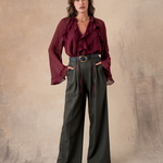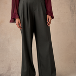 Avec sa coupe ample et ses plis marqués, il allonge naturellement la silhouette. Sa taille haute ceinturée souligne délicatement la taille, tandis que son kaki profond apporte une touche de modernité aux looks de saison.