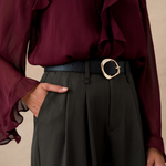 On le porte aussi bien avec une maille légère glissée à l’intérieur pour un style chic-décontracté, qu’avec une chemise structurée pour un rendu plus citadin. Azalée, c’est le pantalon qui accompagne toutes vos envies avec confort et distinction.