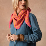 Sa maille enveloppante invite au confort, tandis que son format triangle permet de jouer avec les volumes et les nouages. Porté près du cou ou posé sur les épaules, Élio rose accompagne les journées avec douceur et légèreté. Une pièce réconfortante, pensée comme un petit geste de style au quotidien.