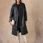 Sa coupe fluide et ceinturée souligne la silhouette avec élégance, tandis que sa matière subtilement satinée apporte une touche moderne à ce grand classique du vestiaire. On aime sa souplesse qui permet de le porter aussi bien ouvert, pour un effet décontracté, que ceinturé pour un look plus structuré.