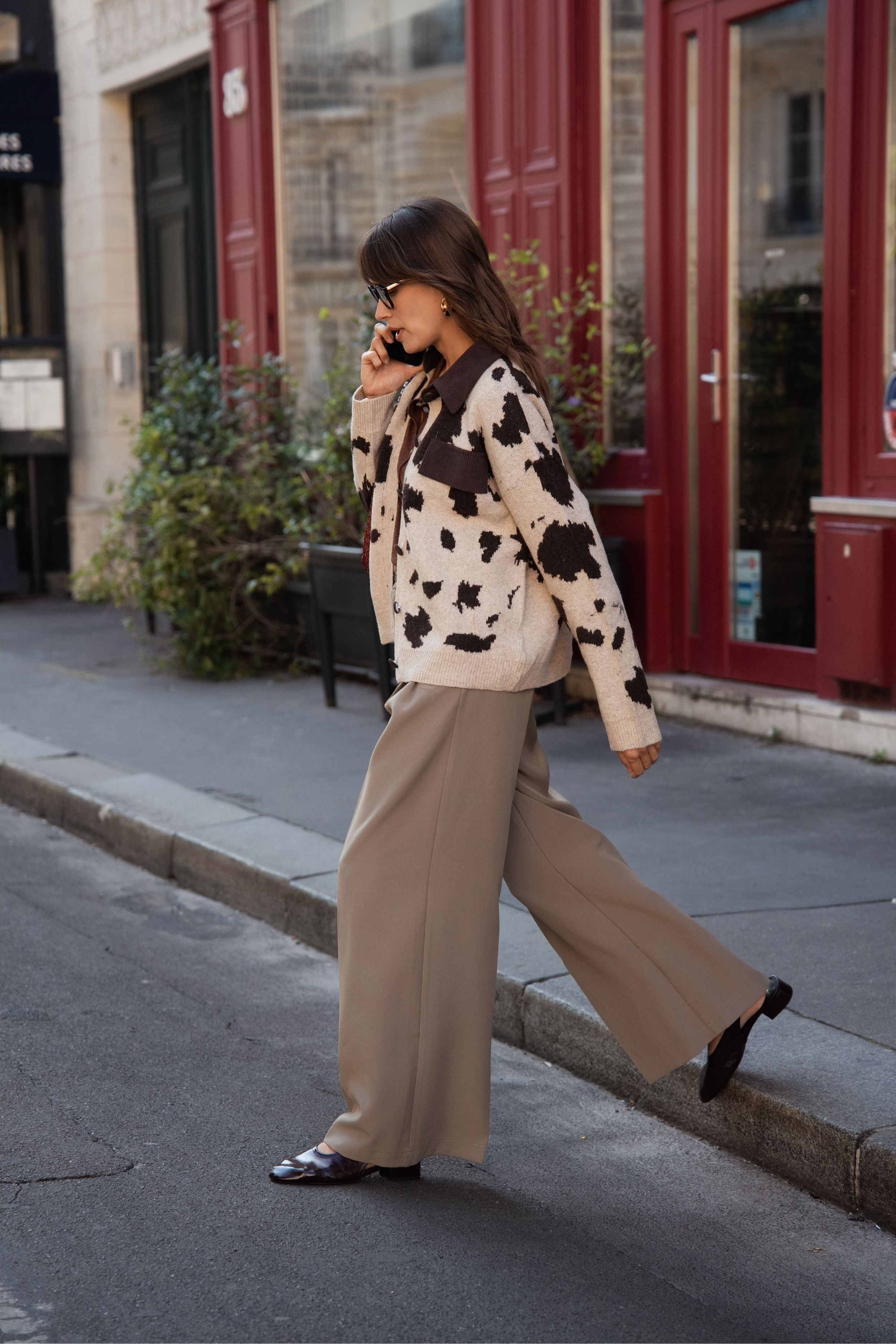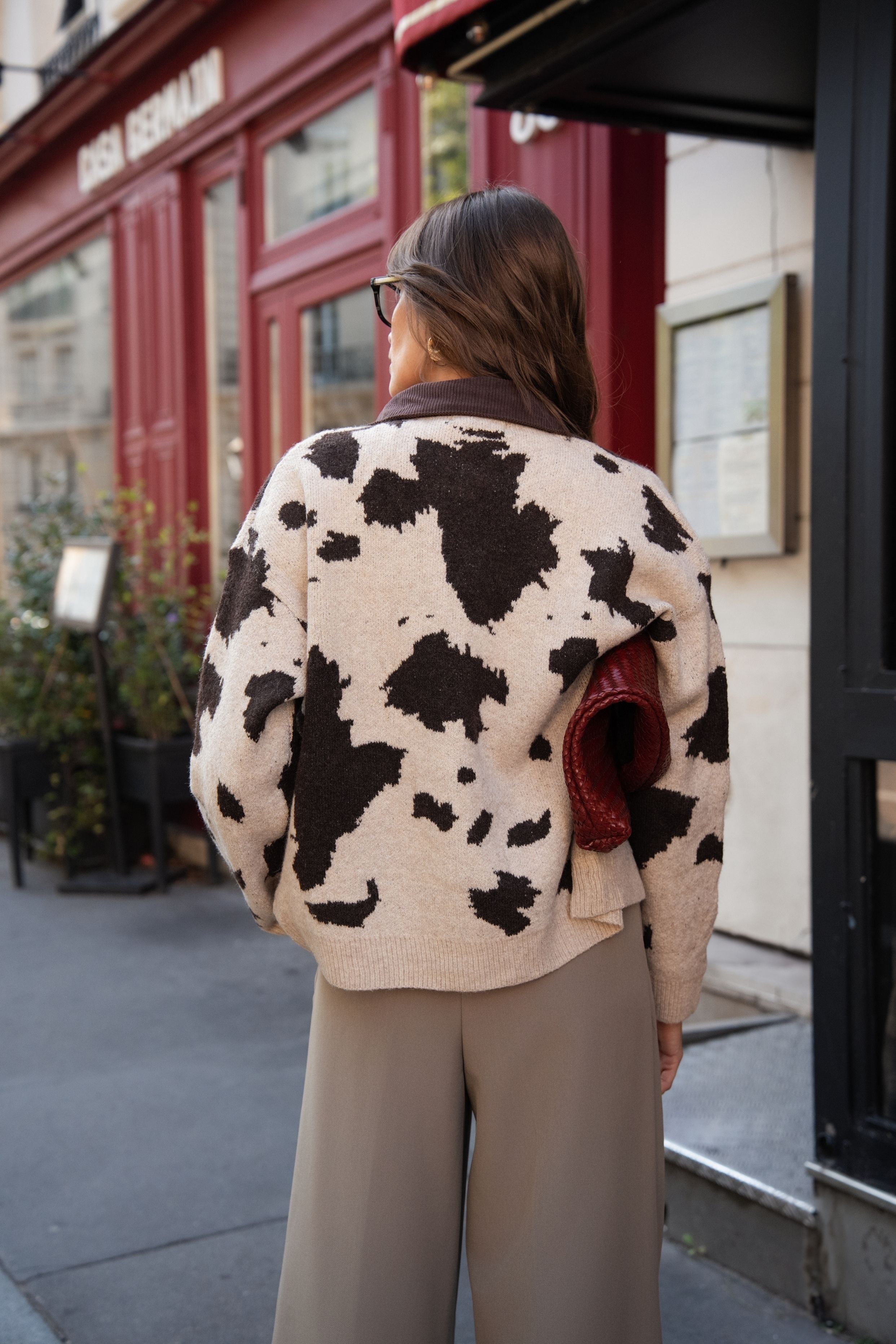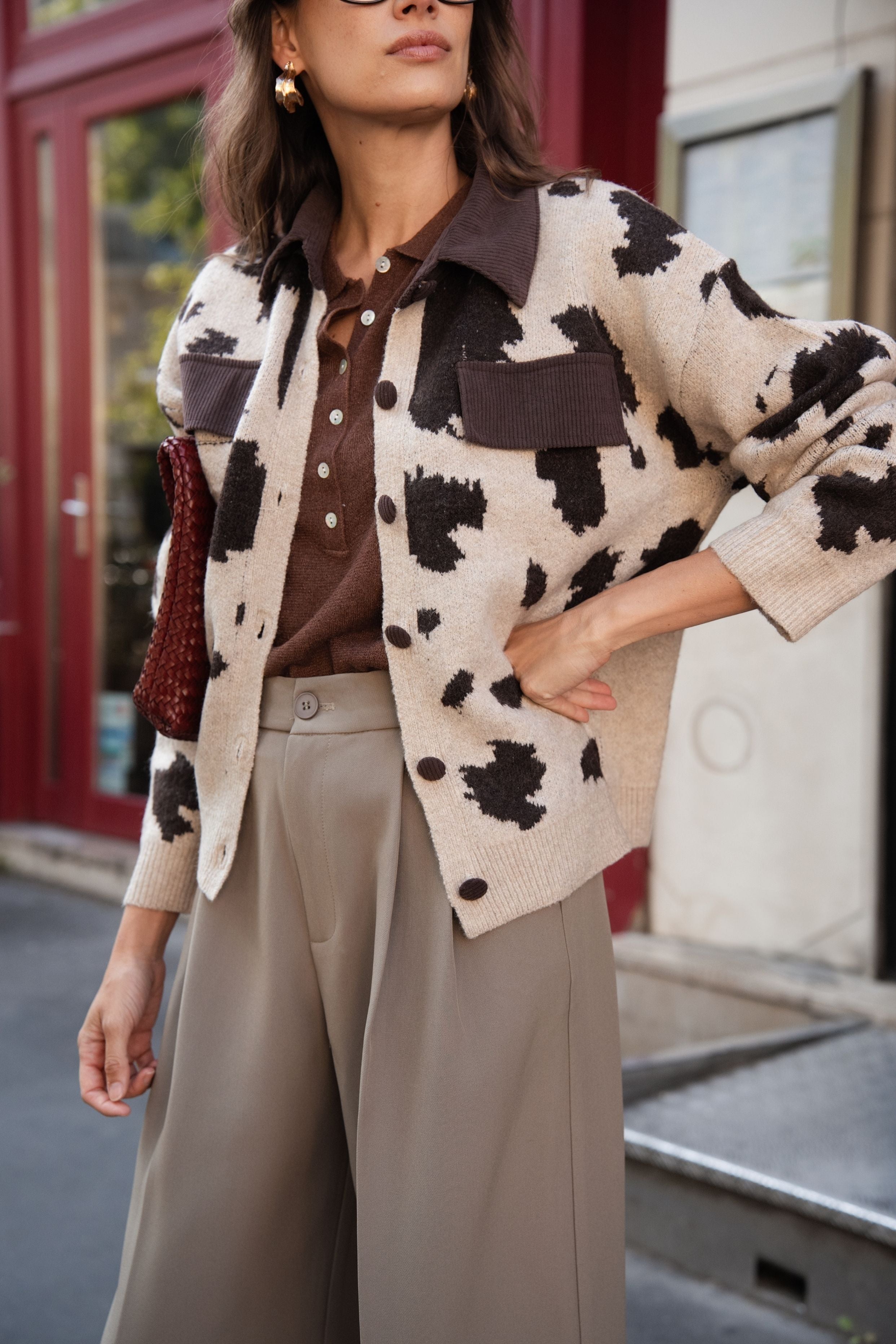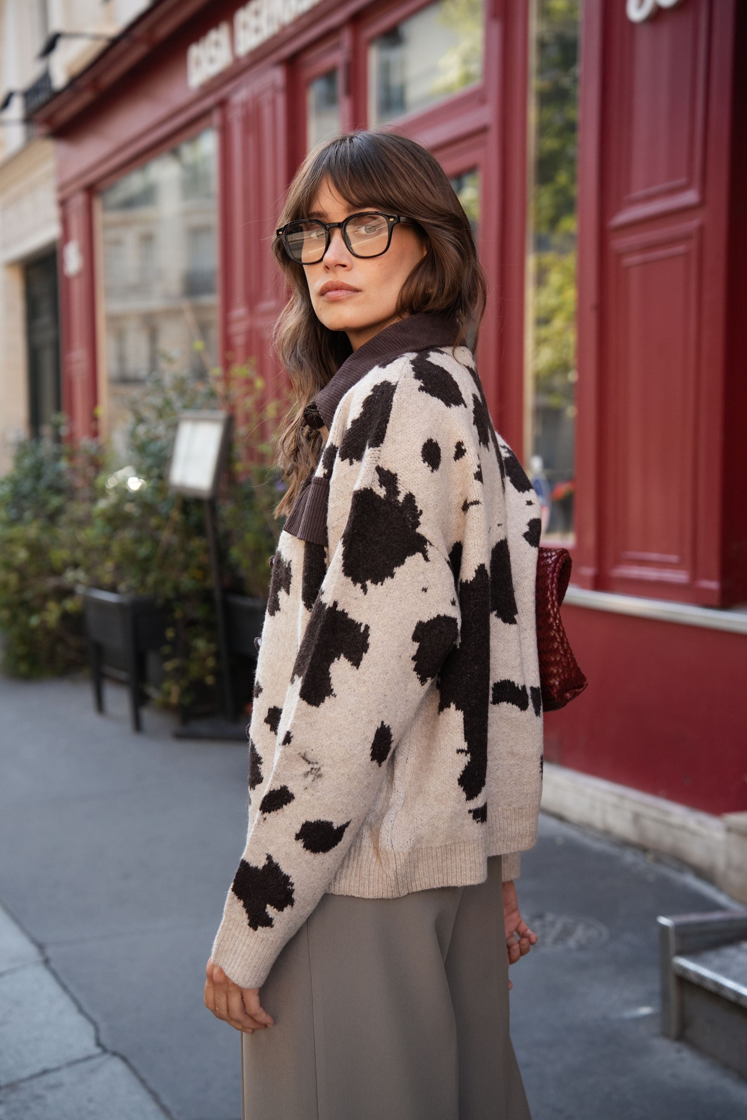 Avec son imprimé graphique façon taches, notre gilet en laine joue la carte du style affirmé tout en restant incroyablement confortable. Sa maille douce et chaude vous enveloppe avec légèreté, parfaite pour les journées fraîches.