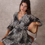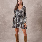 La petite robe Vina est la pièce incontournable de la nouvelle collection "Joli Minois" sur laquelle craquer ! Sa coupe patineuse et son décolleté en font une pièce élégante et moderne pour la saison. À porter avec des bottes hautes pour encore plus d'élégance.