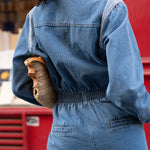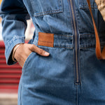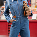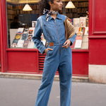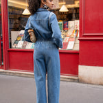 La combinaison Téa puise son inspiration dans le vestiaire utilitaire pour en révéler toute la modernité.Confectionnée en denim, elle dessine une silhouette structurée grâce à sa fermeture zippée et son col à revers. Ses manches longues et ses poches sur les côtés renforcent son allure fonctionnelle, tandis que sa coupe ajustée équilibre confort et féminité. Une pièce tout-terrain, à porter avec des talons pour un look affirmé ou des baskets pour une allure plus décontractée.