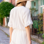 Discover our short-sleeved cotton jumpsuit Brenda, designed with a buttoned fastening and a belted waist for a perfect fit. Buttons on the ankles add a touch of originality to this versatile and fashionable model, making this piece a must-have this season.Ideal for a casual yet elegant look, this jumpsuit offers a modern and comfortable style for all occasions.