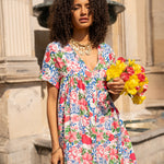 Adopt an irresistible summer look with our Nora floral jumpsuit. Featuring a flattering V-neck and diamond-shaped back opening, it combines style and comfort to perfection. The pockets add a practical and casual touch, while the straight cut guarantees an elegant silhouette. Ideal for a sunny day or a casual outing, this jumpsuit ensures you look fresh and trendy in all circumstances.