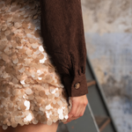 With its sparkling sequins and play of light with every movement, this skirt is a real eye-catcher. Short and full of character, it can be worn with a soft sweater to break the rules or with a light blouse to shine in the evening.