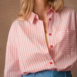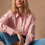 La chemise Lydie à manches longues et aux rayures intemporelles trouve facilement sa place dans le vestiaire du quotidien. Son col à revers et sa patte de boutonnage structurent la silhouette avec justesse, tandis que la poche plaquée sur la poitrine apporte une touche décontractée.