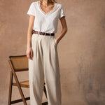 Sa coupe fluide assure un confort optimal tout en offrant une silhouette harmonieuse, sublimée par un décolleté V subtilement structurant.