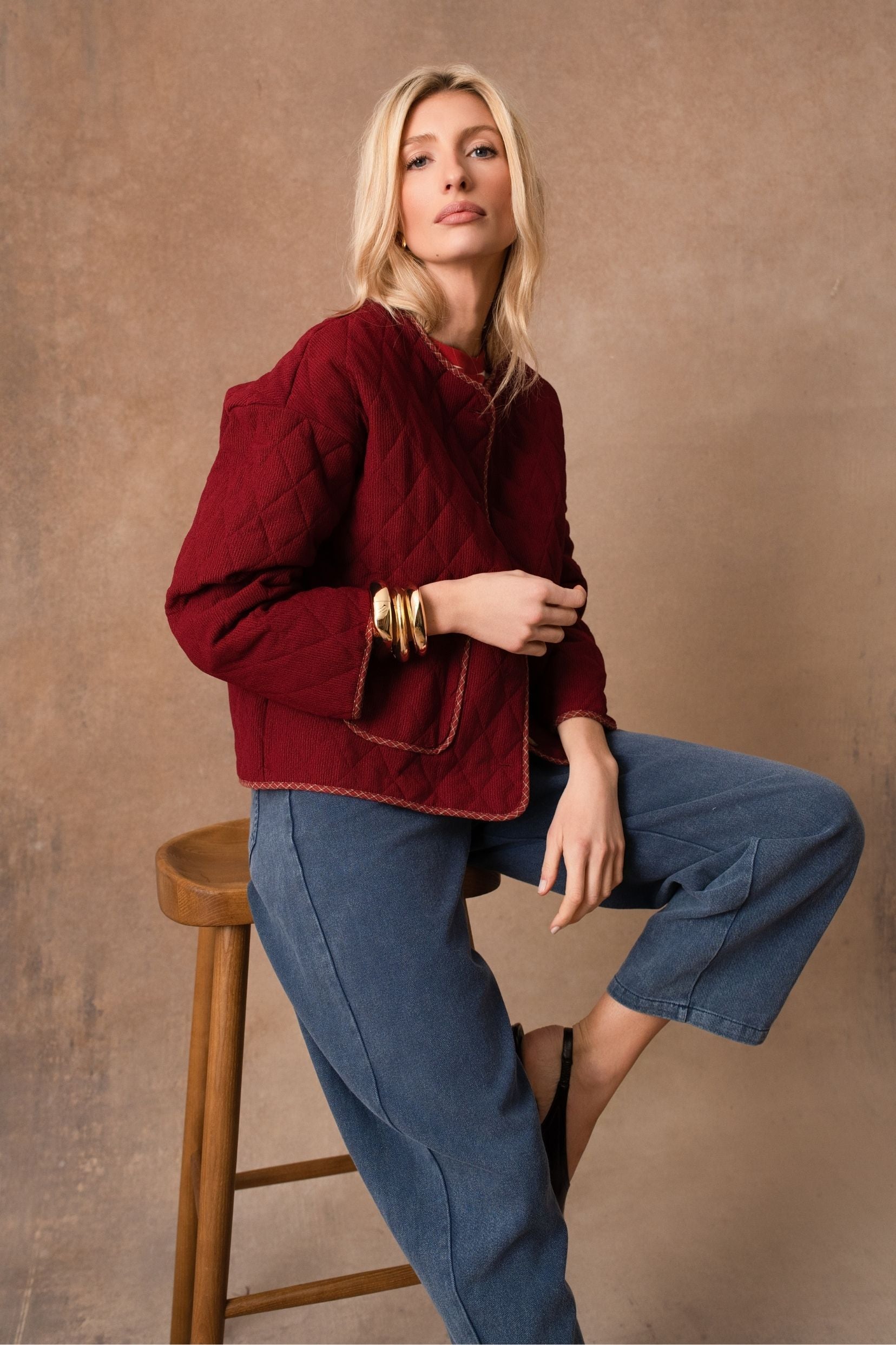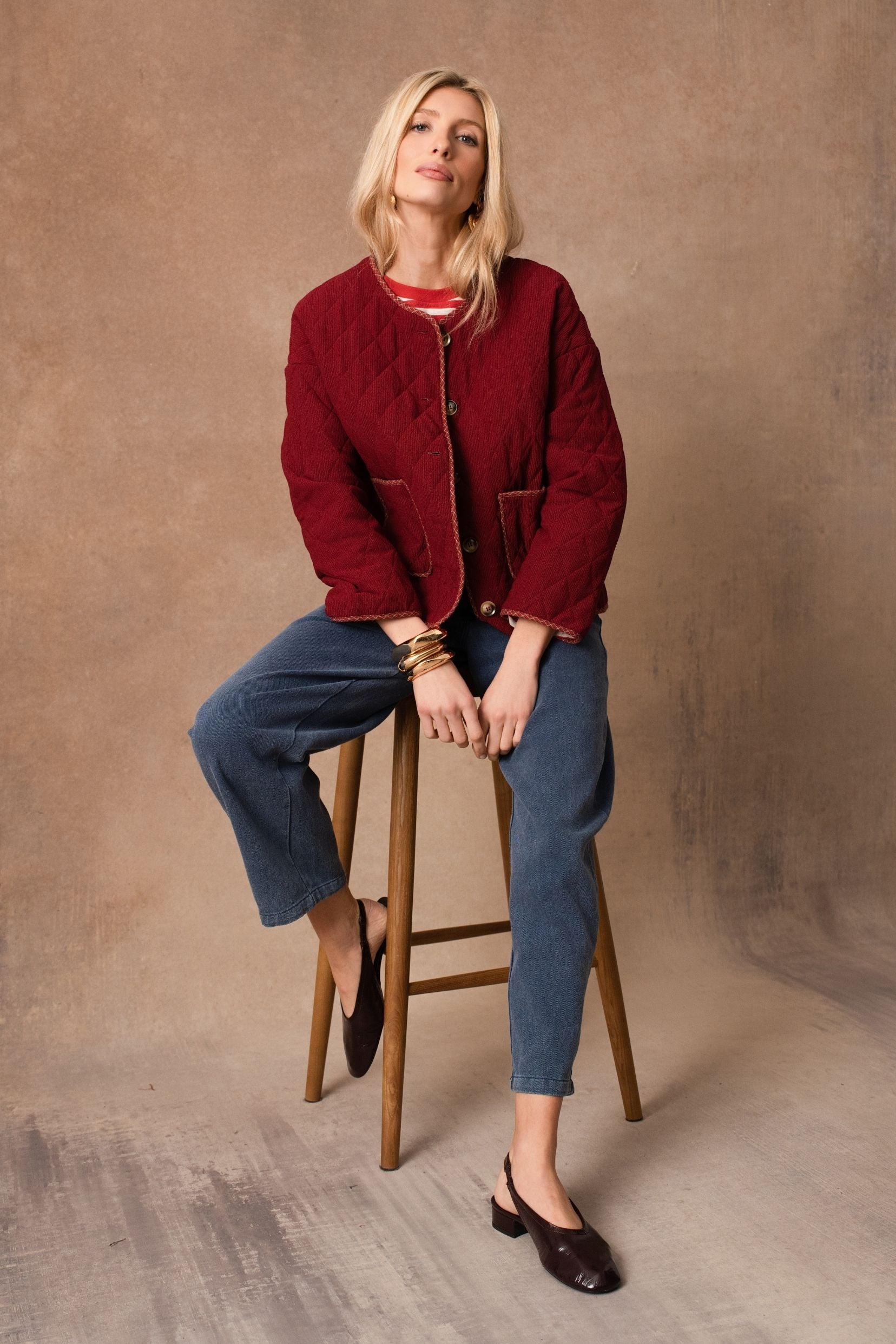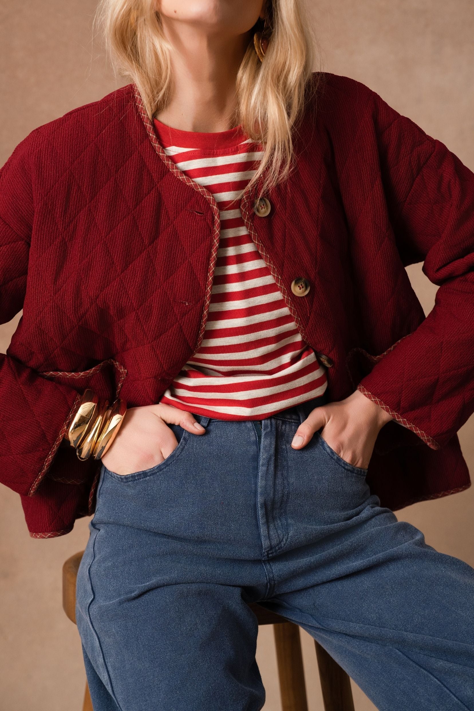 Its straight cut and diamond-shaped stitching provide structure and modernity, while its contrasting checkered finishes give it a unique and refined look. Both comfortable and stylish, it's the perfect jacket to liven up everyday looks.