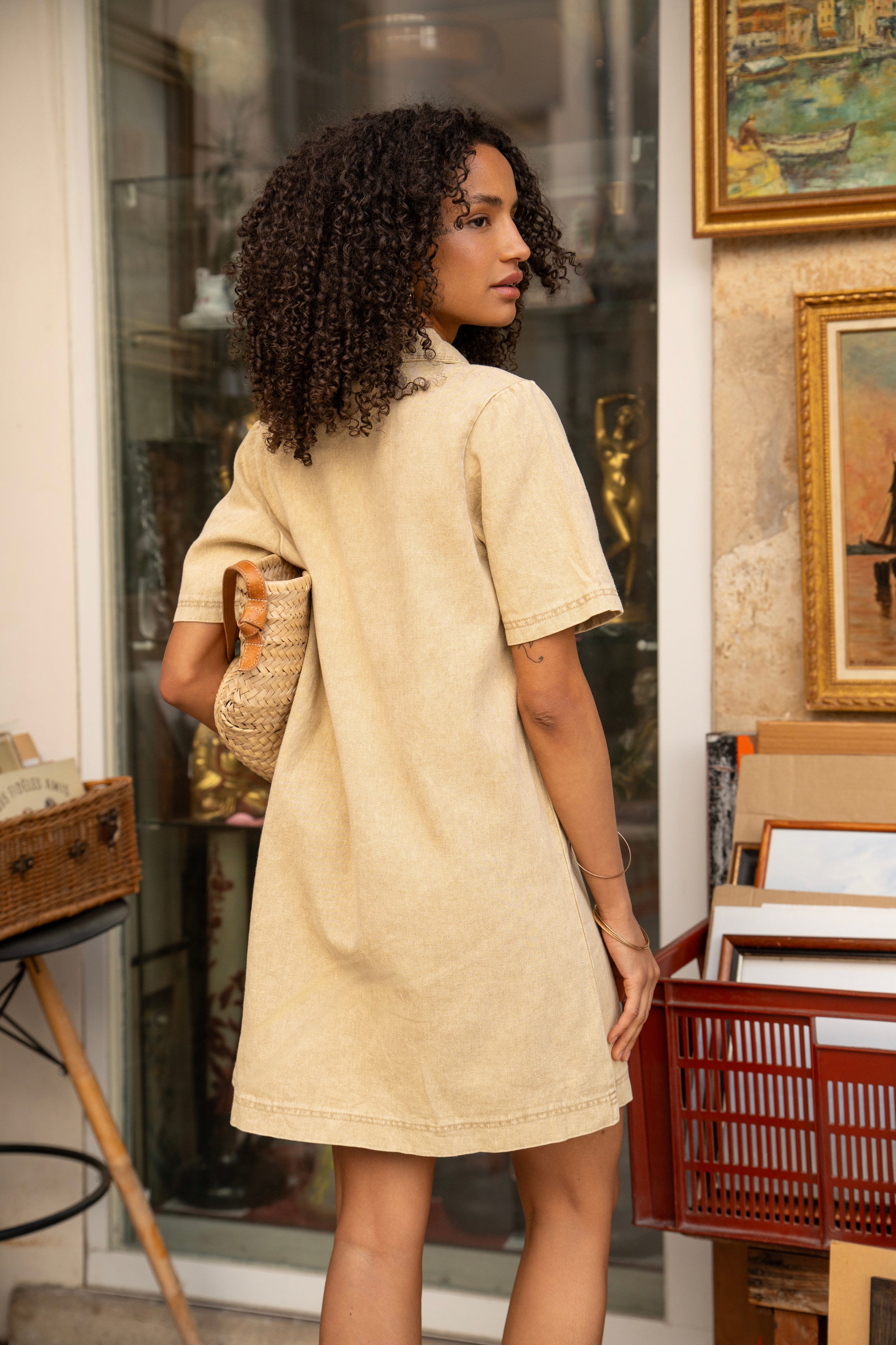 Nadila already stole hearts in our previous collection, and she's back this season to continue the story. Its straight, flowing cut naturally embraces movement, while its open collar and patch pockets on the chest give it a relaxed charm.