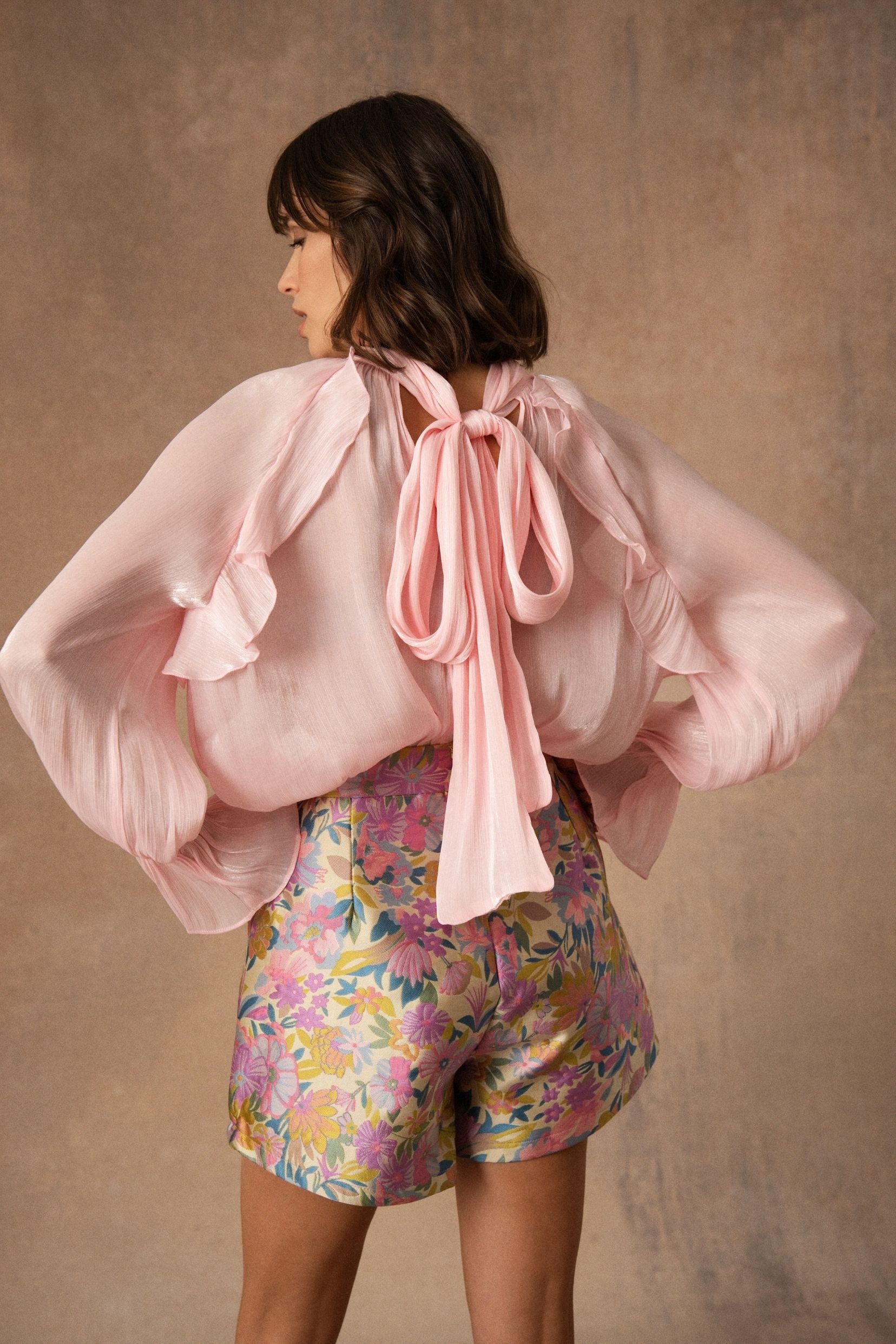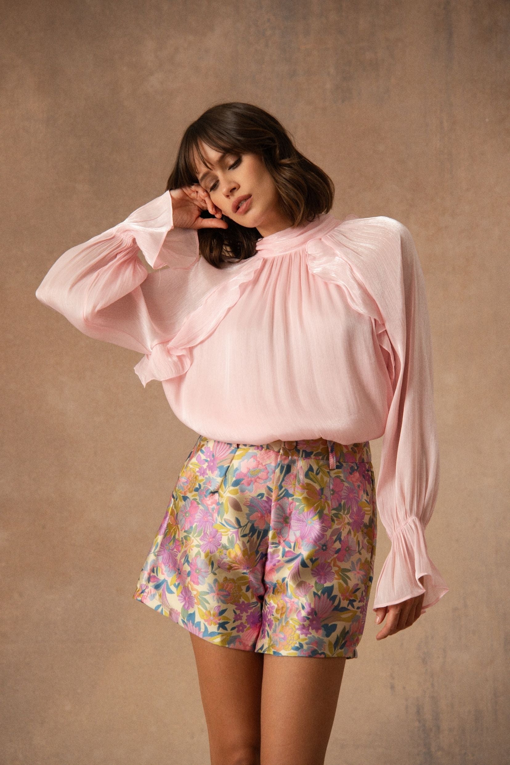 Angeline est une blouse qui mise sur la légèreté du mouvement. Une pièce fluide, délicate, qui accompagne la silhouette avec douceur. Son col montant se prolonge d’un lien à nouer, apportant cette touche élégante et féminine qui signe la pièce. Les fronces sous l’encolure dessinent un joli volume et laissent la matière tomber avec naturel.