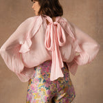 Angeline se porte facilement avec un jean, une jupe ou un short. Une blouse délicate, pensée pour celles qui aiment les silhouettes fluides et les détails subtils.