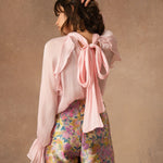 Les manches longues se terminent par des poignets évasés qui renforcent cette allure aérienne et donnent à la blouse tout son charme.