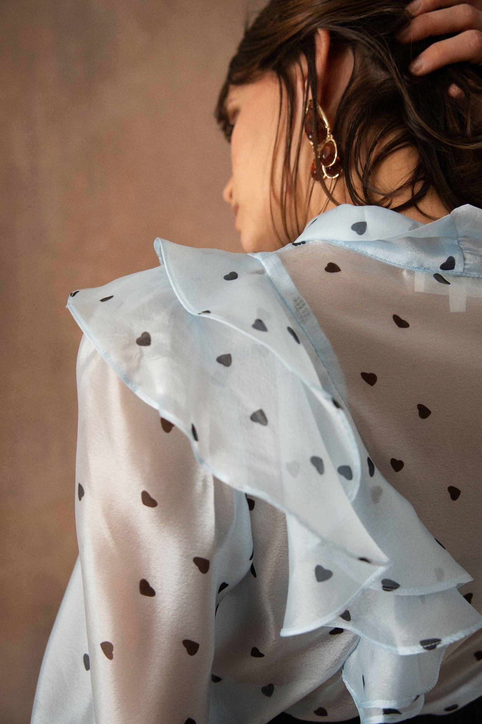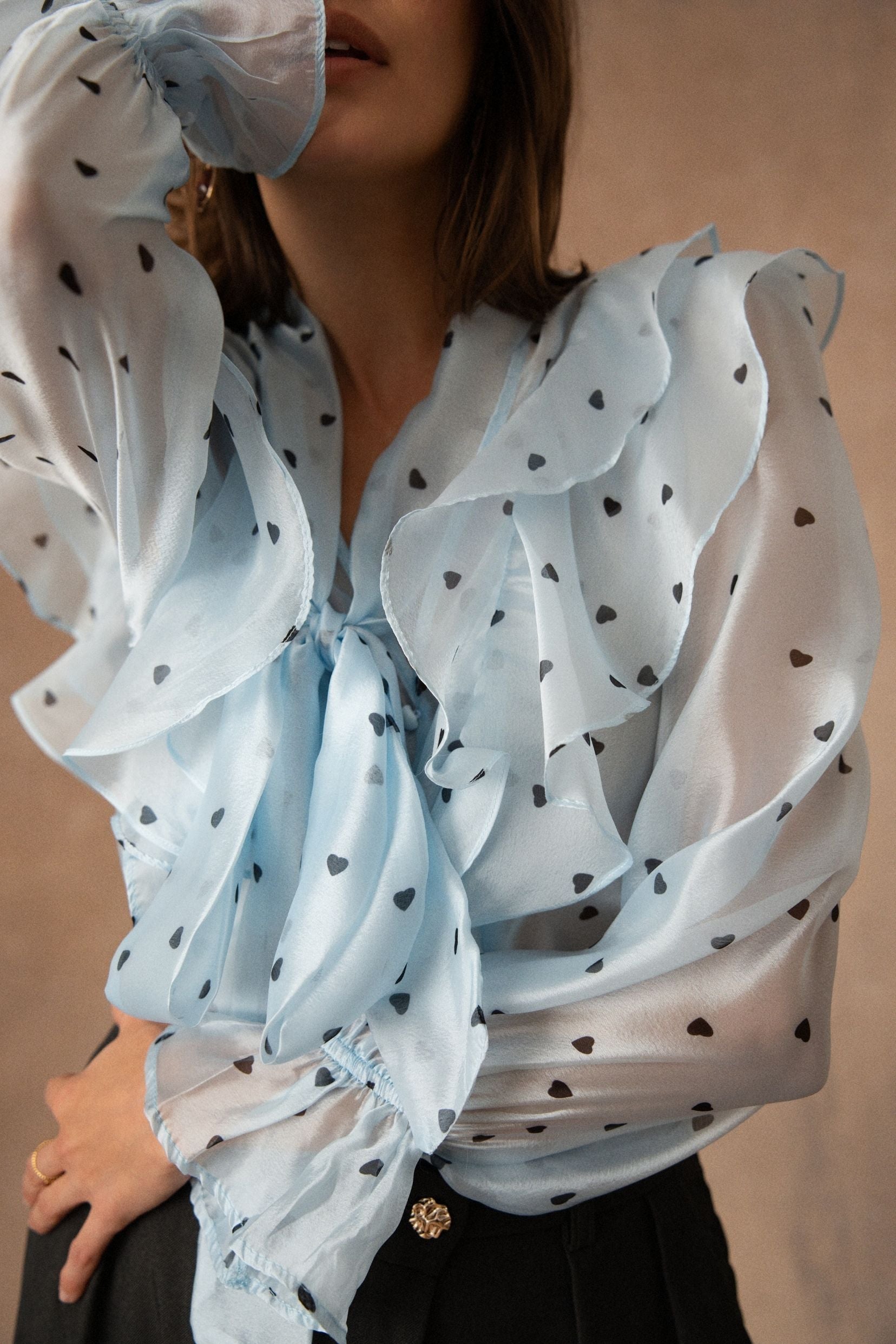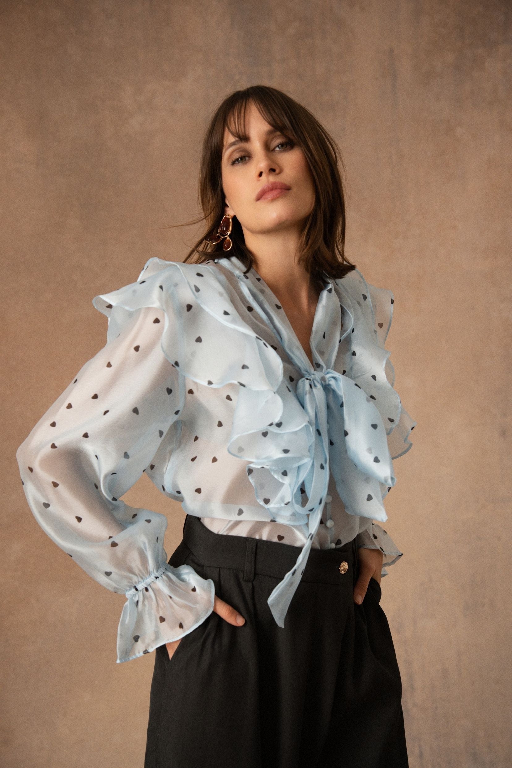 Notre blouse fluide et transparente joue la carte d’une féminité assumée, sans en faire trop.