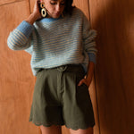 It can be worn tucked into high-waisted jeans for a casual and confident look, or with a flowing skirt to soften its graphic energy. Lucile is the sweater that plays with colors and makes each look unique.