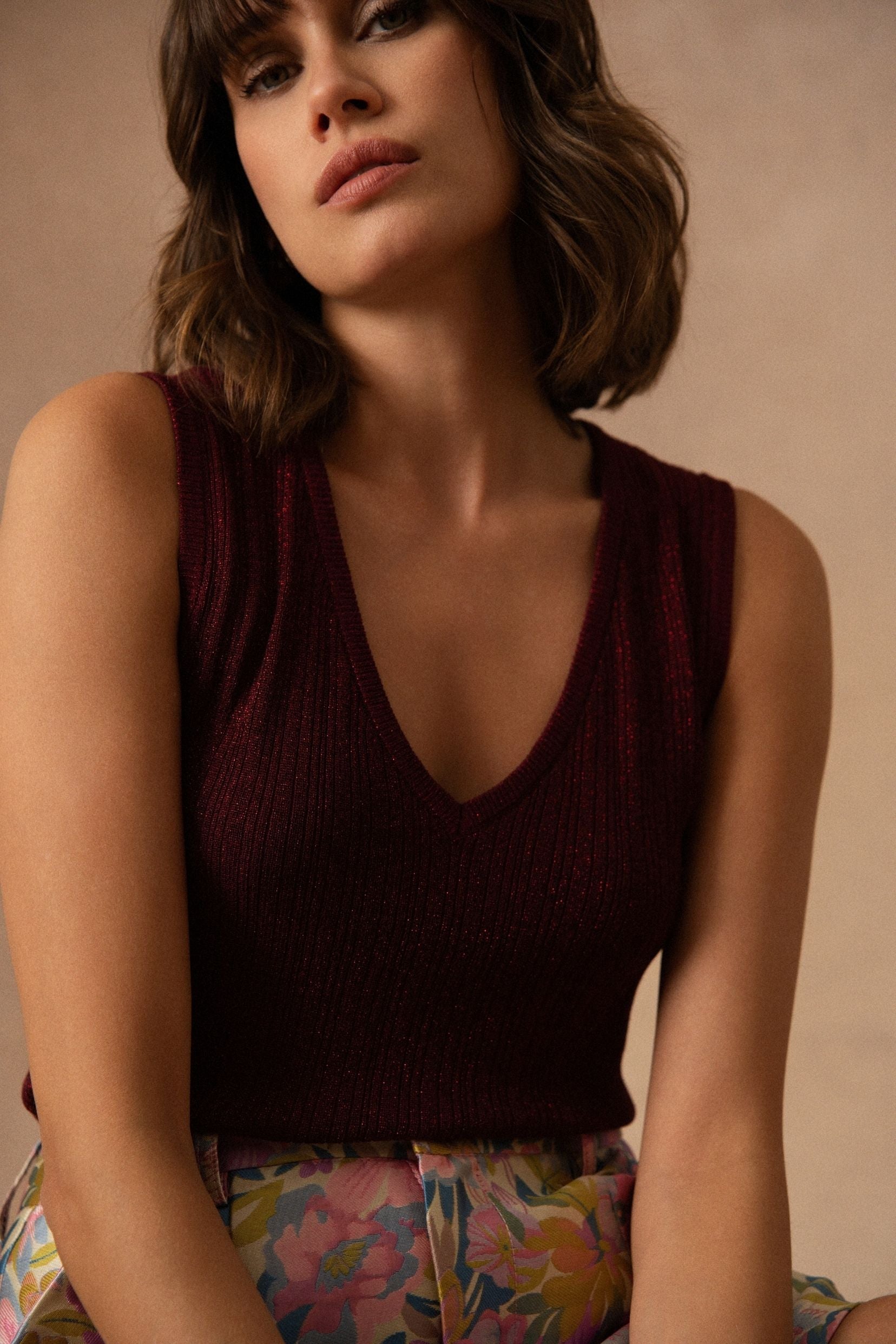 Victoire est de ces pièces simples qui trouvent naturellement leur place dans un vestiaire. Un pull sans manches à la ligne nette, pensé pour accompagner les silhouettes avec facilité. Sa maille côtelée et son encolure en V dessinent une allure à la fois sobre et élégante. La coupe reste droite, confortable, idéale pour se porter seule ou en superposition selon l’envie.