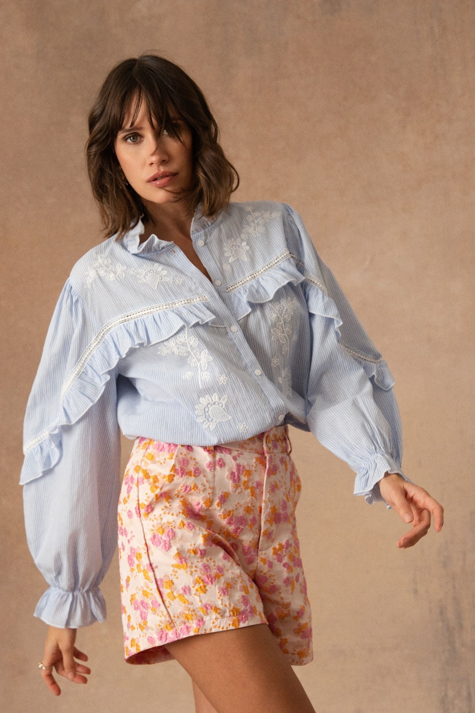 Facile à associer, Olympéa se porte avec une blouse légère, une chemise nouée ou un simple t-shirt. Un short simple, lumineux, qui donne immédiatement de l’allure à une silhouette d’été.