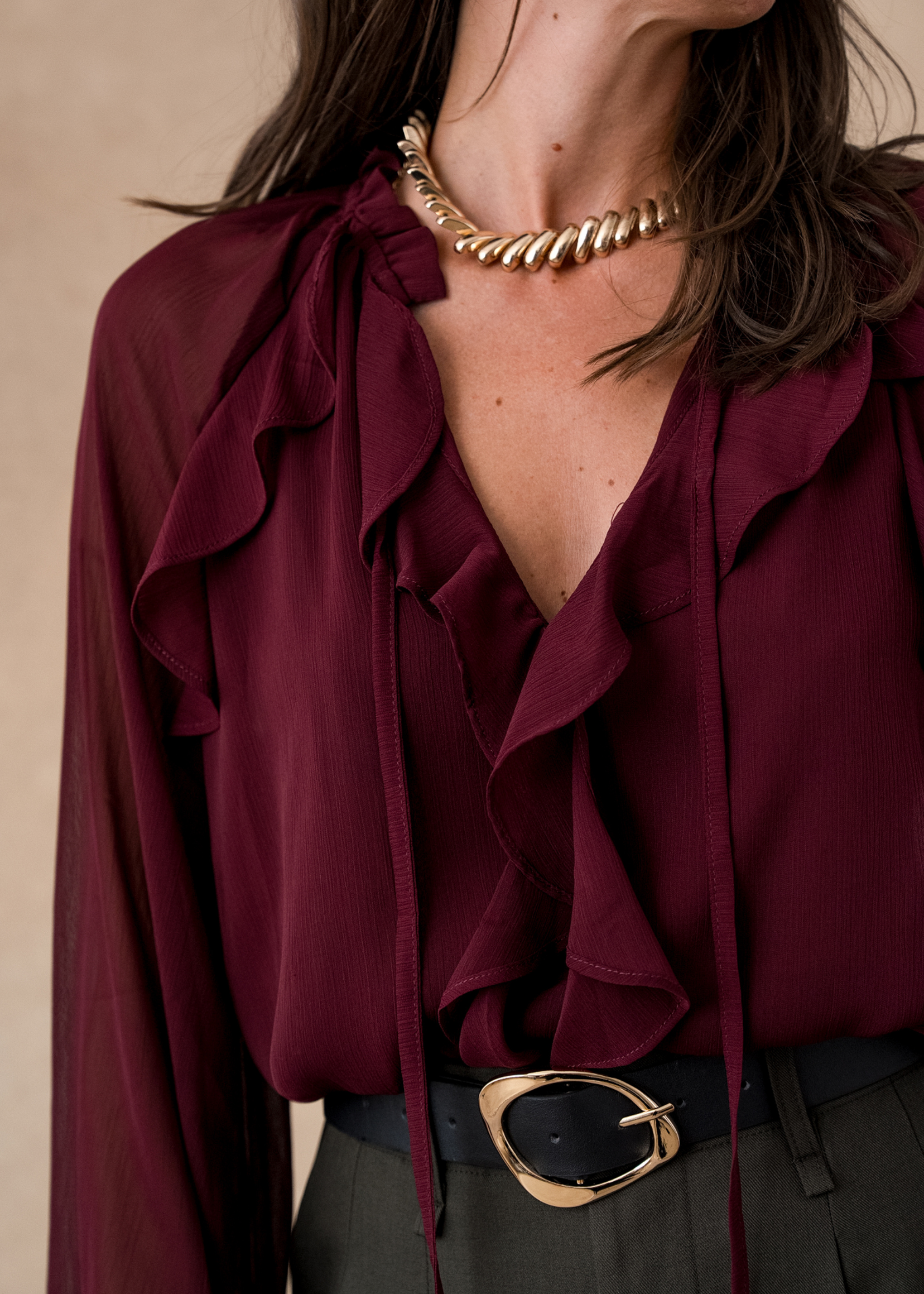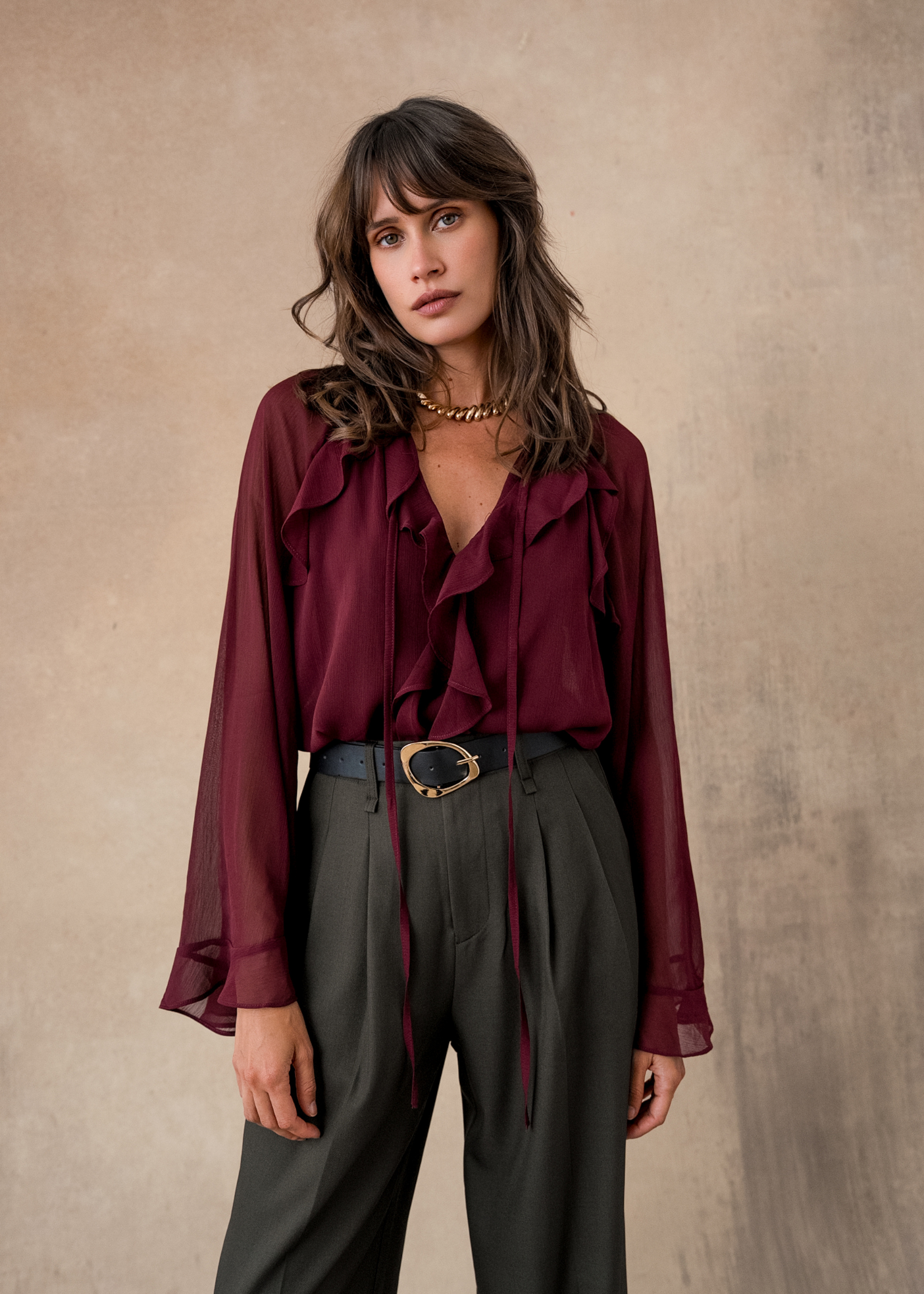 Léger et fluide, il laisse deviner subtilement la peau, apportant une touche féminine et affirmée à vos looks. On aime sa coupe aérienne et sa matière fluide qui se pose avec naturel sur la silhouette.