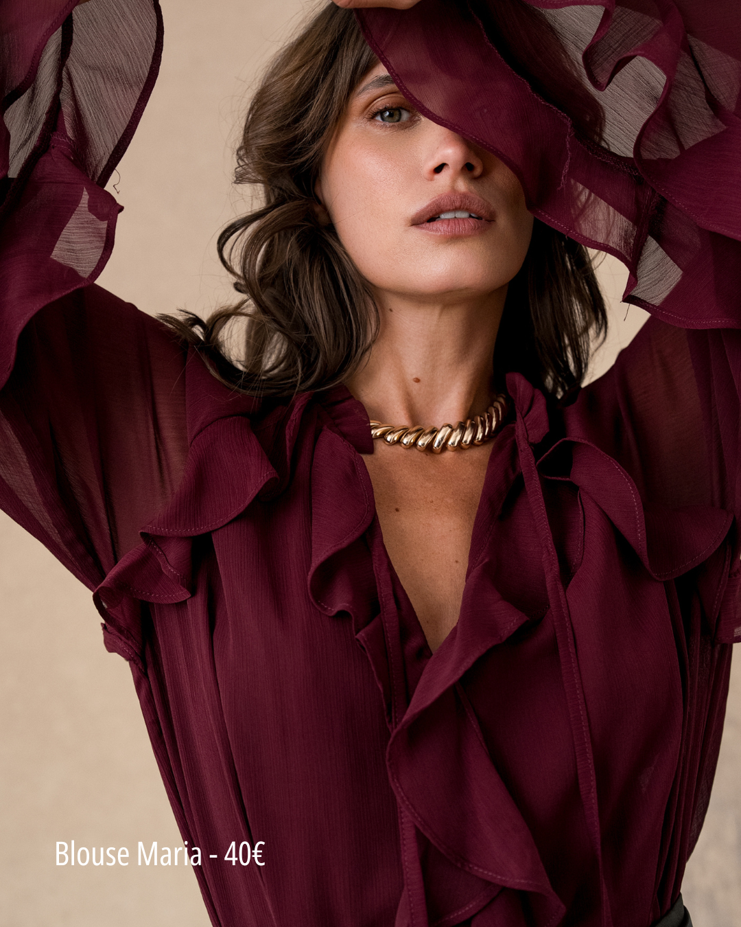 Louison, muse de ce vestiaire, incarne cette élégance qui ne s’impose jamais, mais se révèle avec justesse.