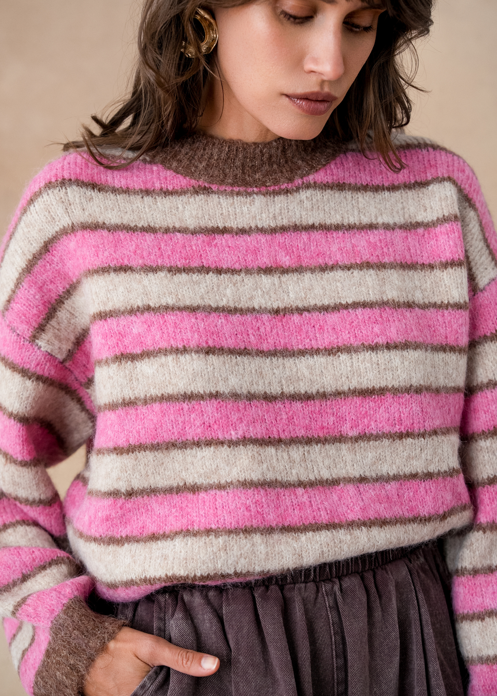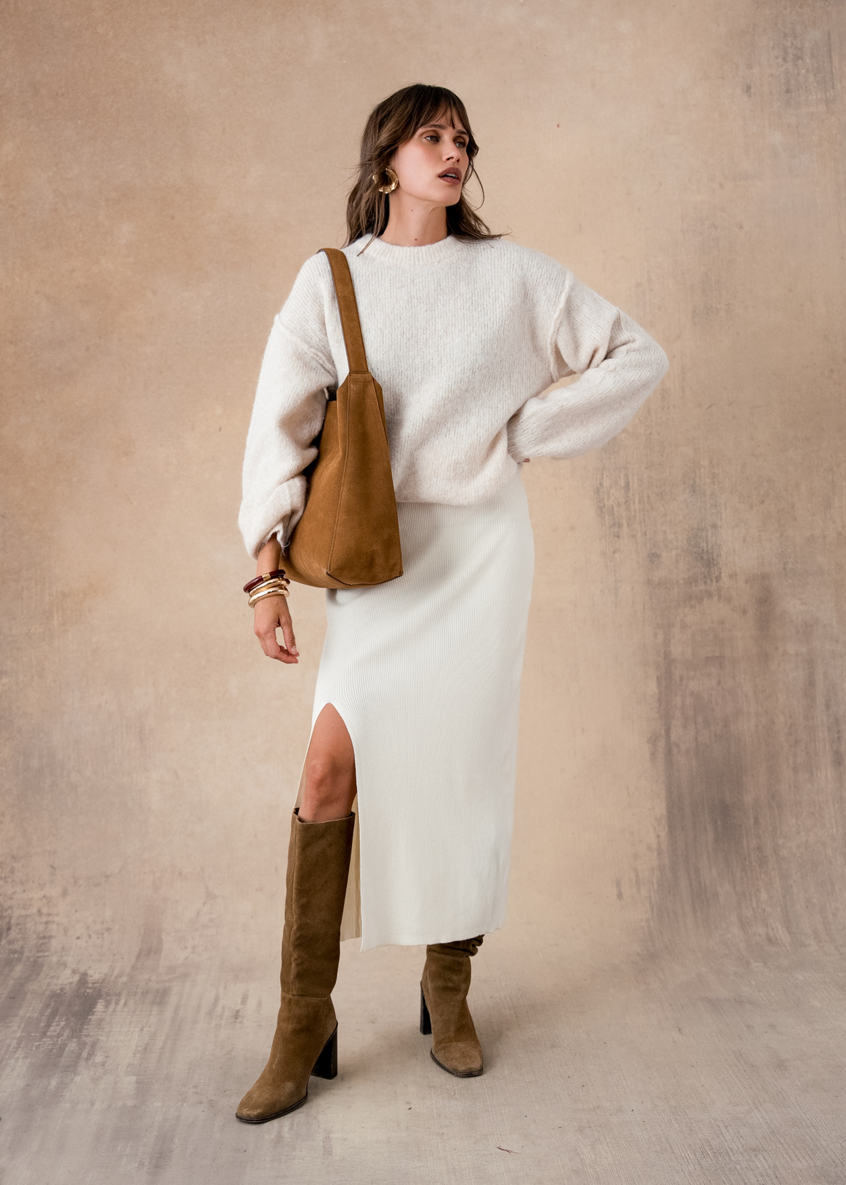 Les mailles réconfortantes se marient aux jupes fluides, les manteaux s’enroulent comme un refuge, et les hauts rayés apportent une touche de légèreté aux journées plus courtes.