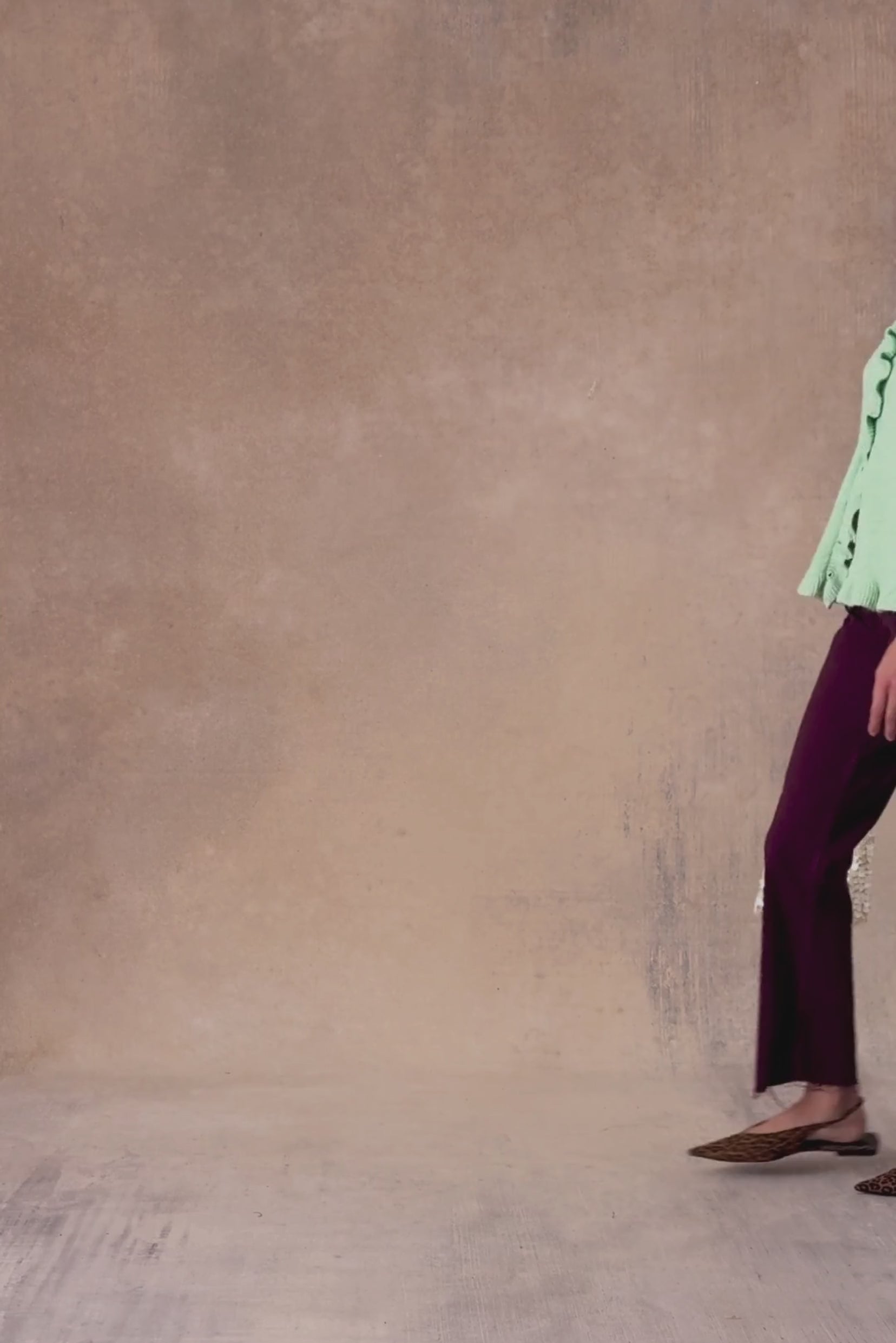 Sa maille douce et sa coupe droite en font un modèle facile à porter, que l’on adopte sans y penser. Les finitions volantées au col, le long de la patte de boutonnage et à la base viennent souligner son allure féminine et apportent un léger mouvement à la silhouette.