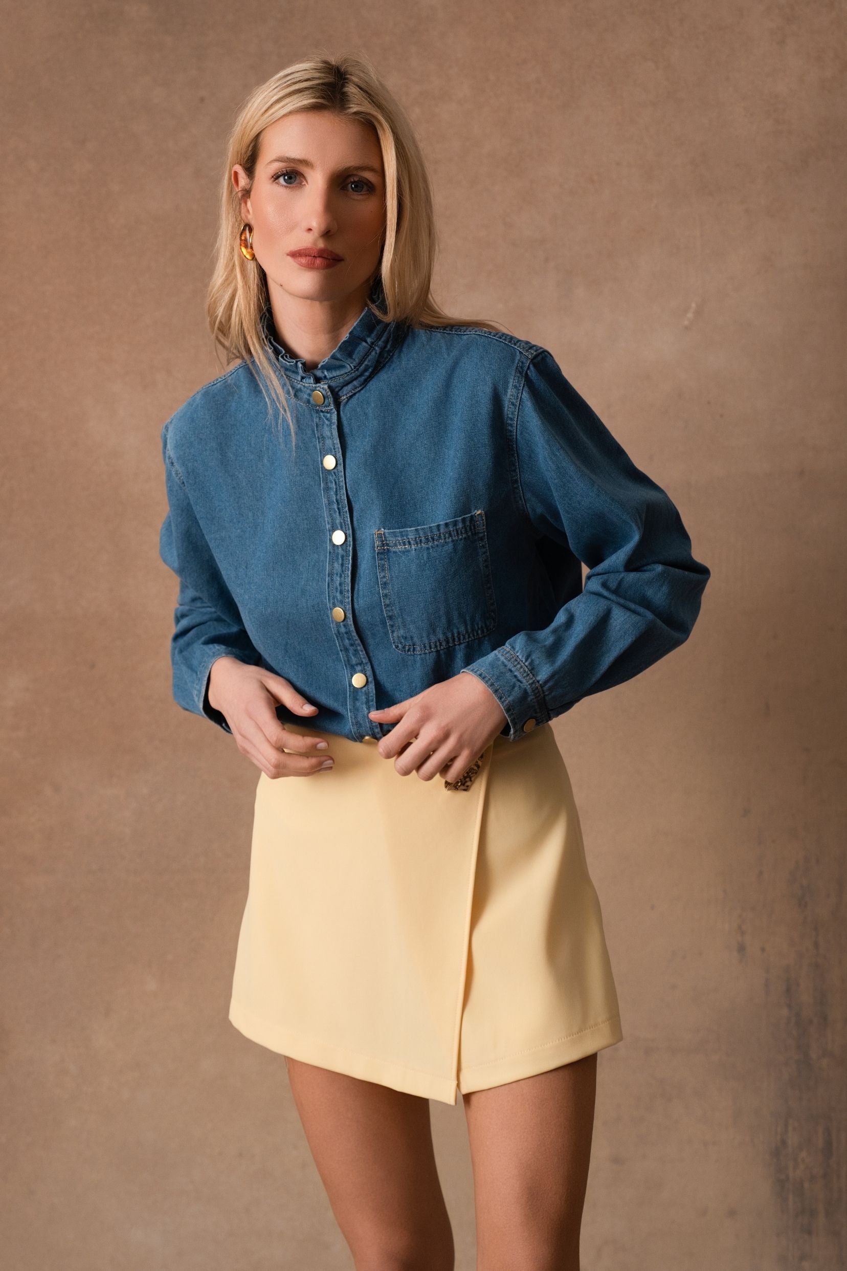La chemise en jean Mireille trouve naturellement l’équilibre entre décontraction et élégance. Sa coupe droite, confortable et facile à porter, dessine une silhouette libre, tandis que son denim souple accompagne les mouvements avec douceur.