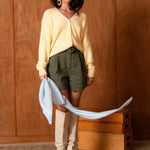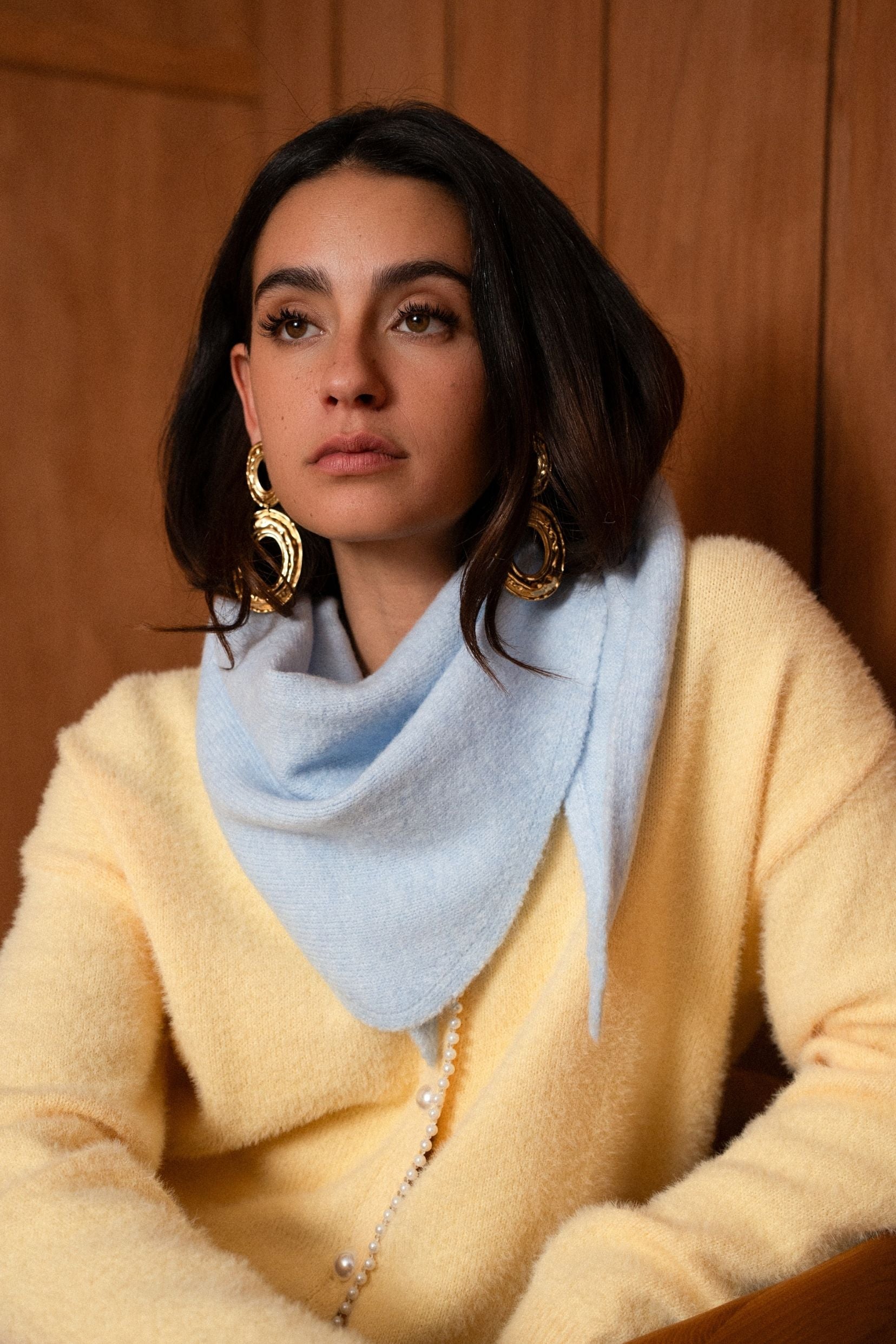 Sa maille légère se pose naturellement autour du cou et accompagne les mouvements sans jamais contraindre. Noué simplement ou porté plus lâche, Élio ciel apporte cette note lumineuse qui change tout, comme un souffle clair dans le vestiaire. Un essentiel discret, pensé pour les jours où l’on a envie de douceur.