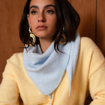 Une nuance douce, presque aérienne, qui éclaire les tenues et adoucit les silhouettes. C’est un foulard que l’on choisit pour sa couleur fraîche et que l’on garde pour son confort enveloppant.