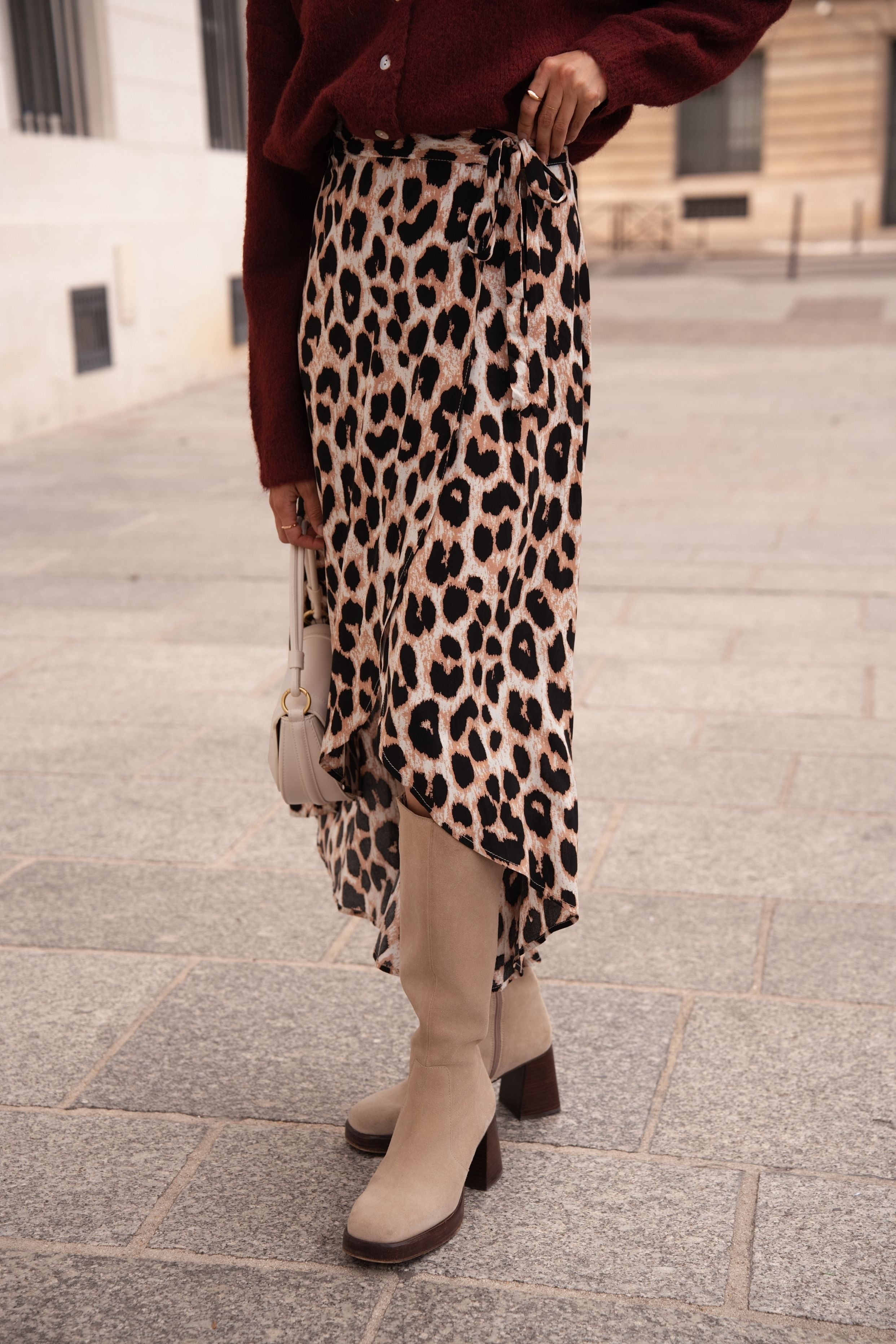 Floriane, c’est la jupe portefeuille qui allie féminité et caractère. Son imprimé léopard intemporel se marie à une coupe midi fluide et asymétrique, créant un mouvement élégant à chacun de vos pas. La taille haute se noue grâce à un lien ajustable, permettant un tombé parfait et confortable.