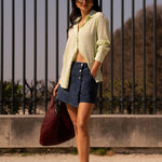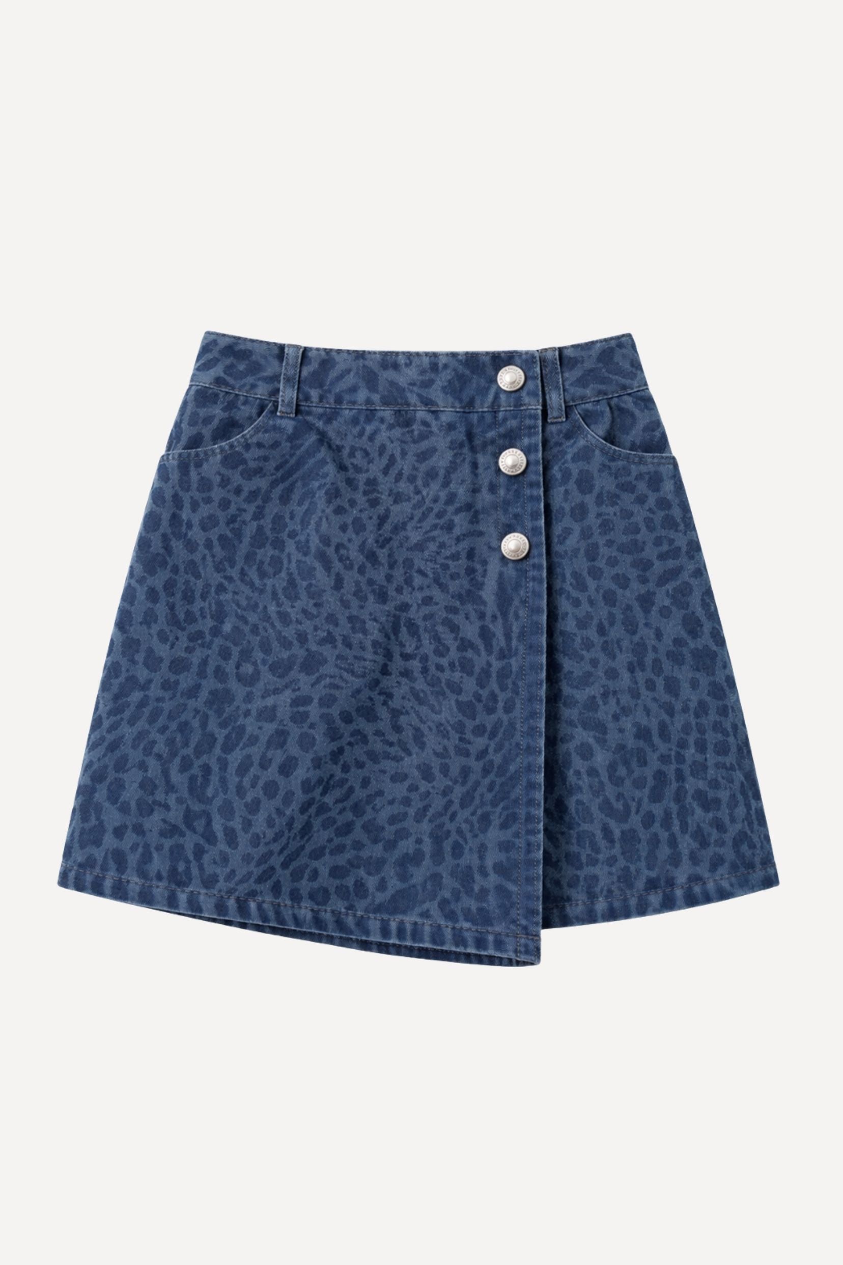 La jupe-short en jean Doémie se distingue par son imprimé léopard subtil et sa coupe portefeuille flatteuse. Sa taille élastiquée avec passants pour ceinture assure un ajustement parfait, tandis que les poches avant et arrière ajoutent une touche pratique et décontractée. Confectionnée dans un denim de qualité, cette pièce allie confort et style, idéale pour créer des looks à la fois modernes et raffinés. La jupe-short Doémie est parfaite pour apporter une touche d'originalité à votre garde-robe tout en restant élégante.