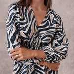 Ornée de motifs abstraits, la robe Cassie est une pièce parfaite pour cette sausin. Ce que l'on aime particulièrement, ce sont ses petites ouvertures glamour sur les côtés, qui lui donnent une allure encore plus séduisante et moderne. Parfaite à porté en journée, la robe Cassie incarne le style moderne classique. Idéale à porter avec des bottes hautes pour un look encore plus moderne.