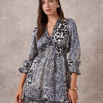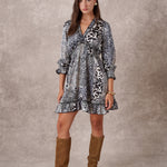 Plongez dans l'élégance décontractée avec notre robe Clémence et ses motifs abstraits. Sa couleur classique et ses motifs contemporains en font un choix idéal pour un style à la fois simple et moderne. Polyvalente et confortable, cette robe s'adapte à diverses occasions et se porte parfaitement avec des bottes hautes.