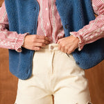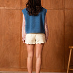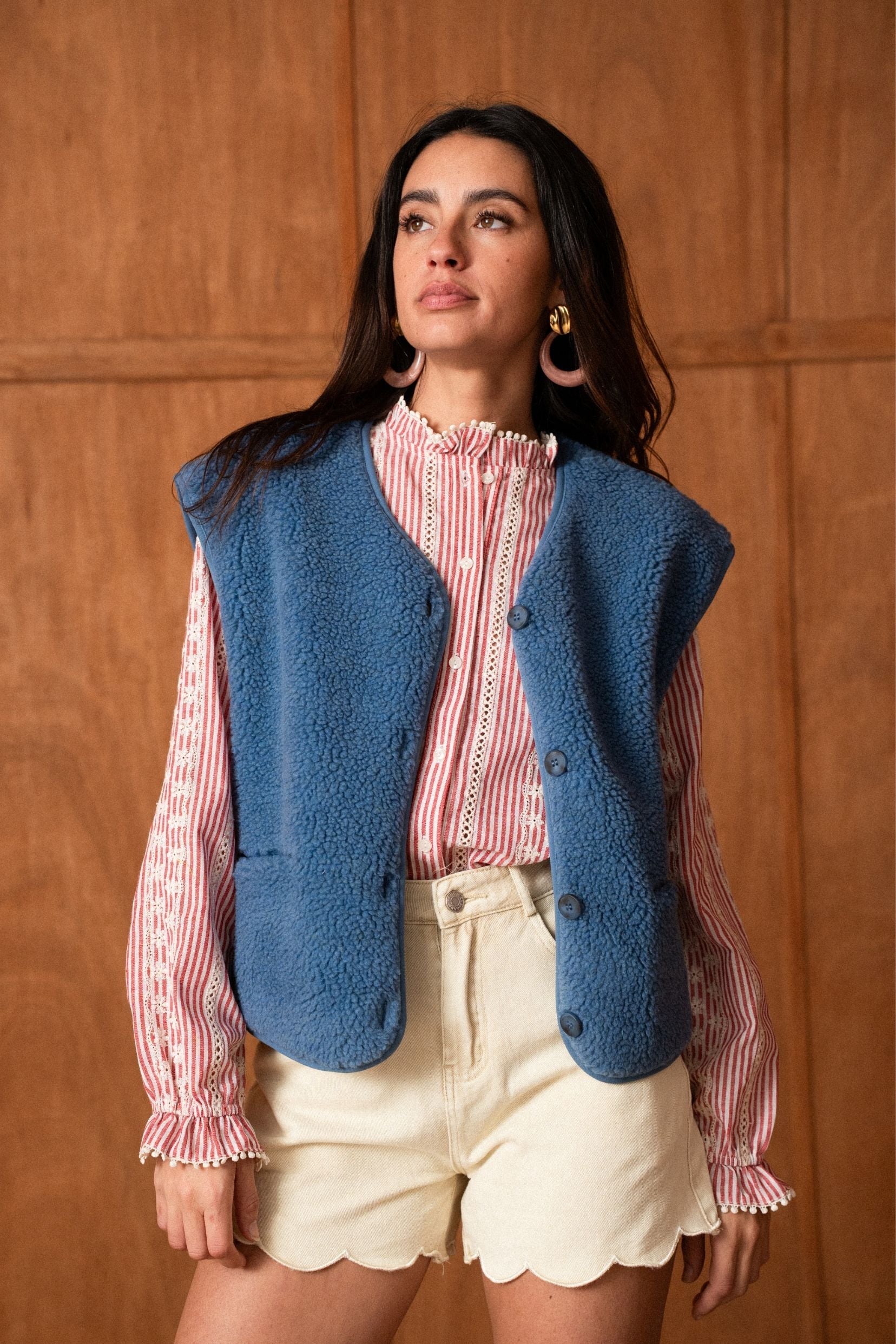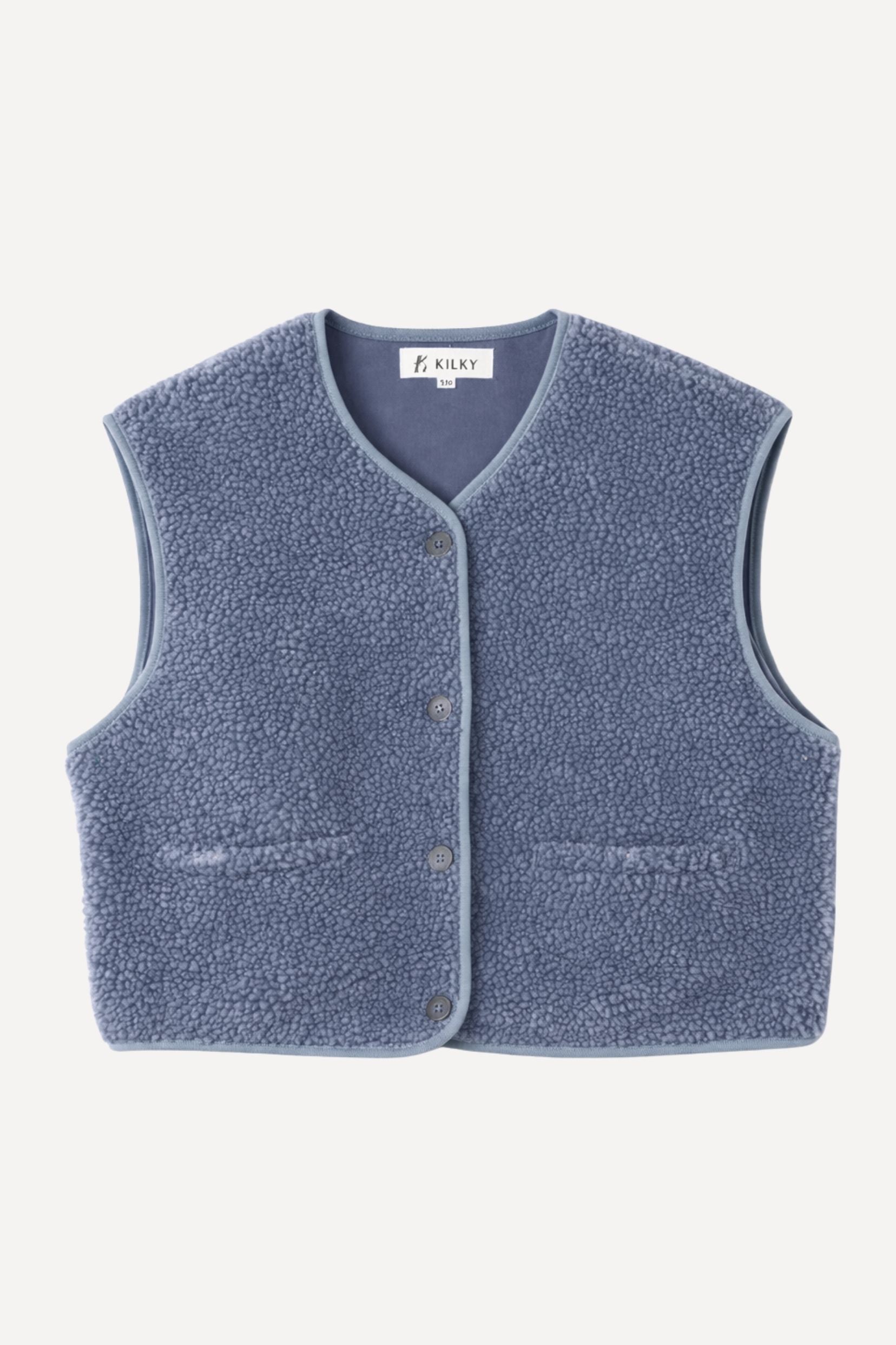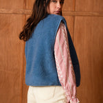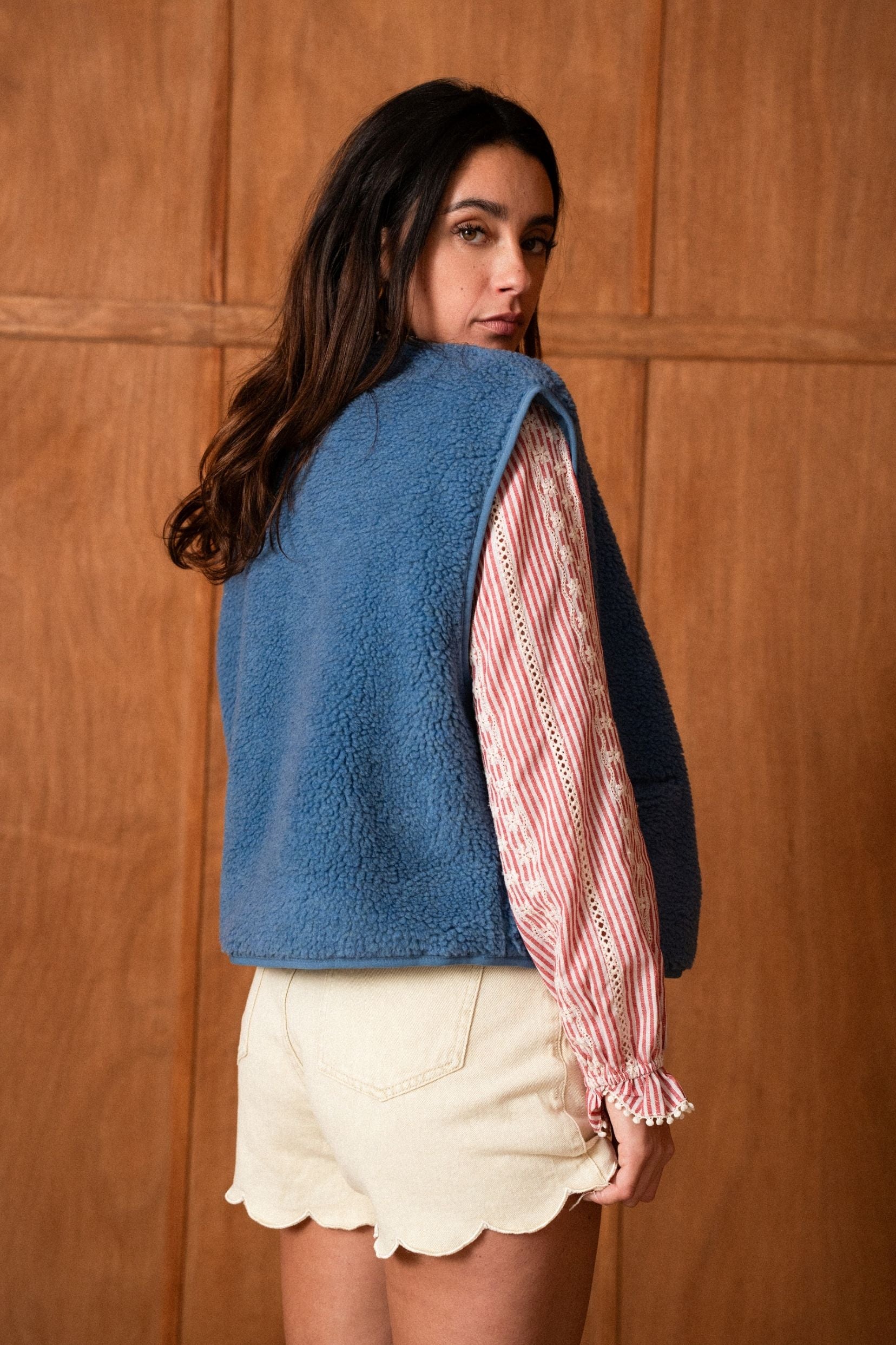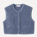 Mélisande, c’est la veste sans manches qui réchauffe la silhouette avec justesse. Son bleu jean apporte une touche moderne et facile à associer, tandis que sa matière toute douce enveloppe sans alourdir. Pensée comme une pièce de transition, elle se glisse sur une blouse, un pull fin ou une chemise pour structurer un look en un clin d’œil.